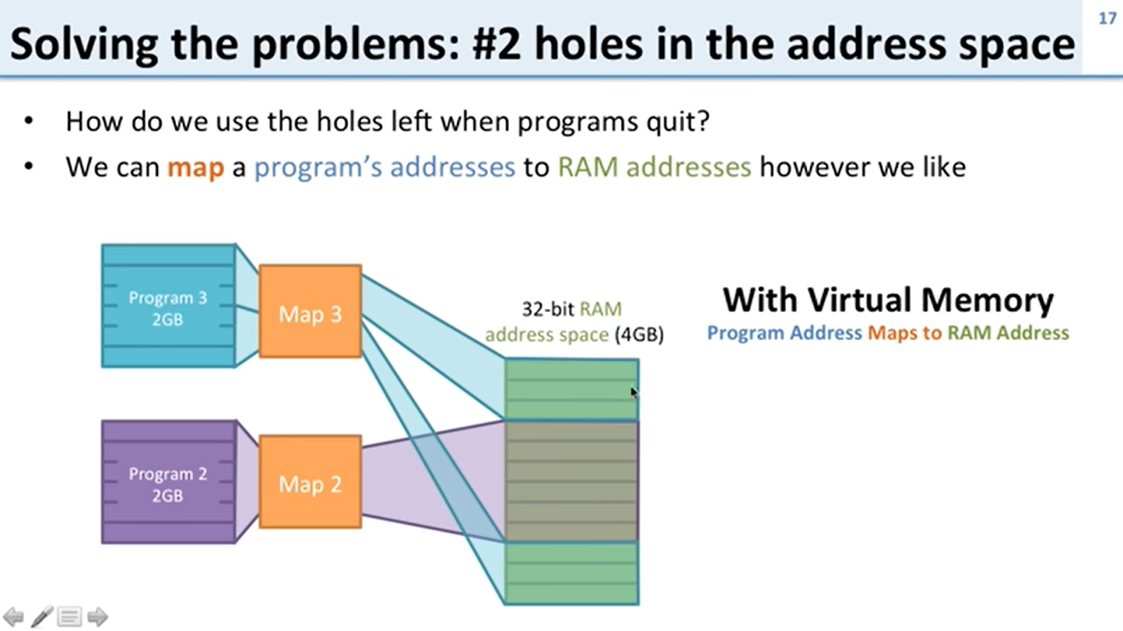 - As per Address line, a program can access any bye in their 32-bit address space. in case of the 1GB physical memory. what if the program is trying the access more than 1GB memory area access? the progress will crash.